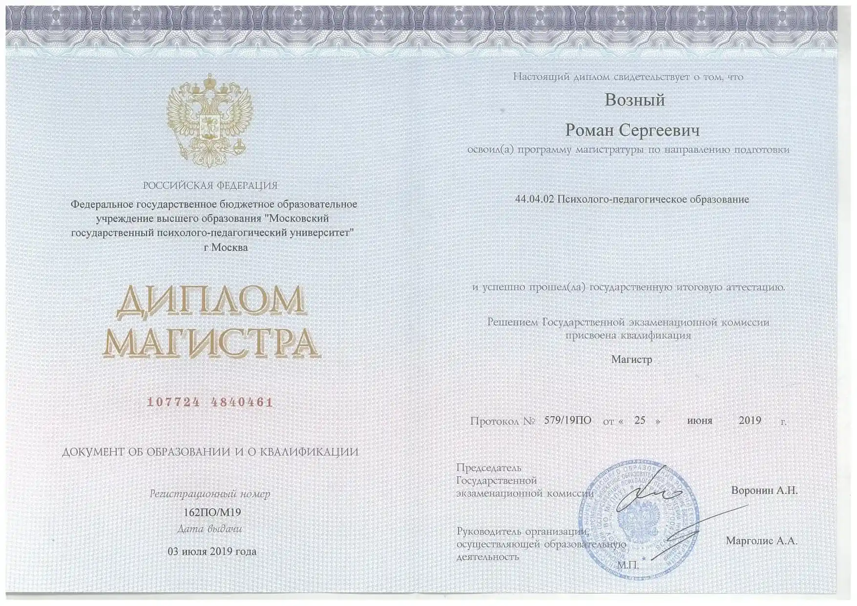 - Московский Государственный Психолого-педагогический Университет с 2016-2018
